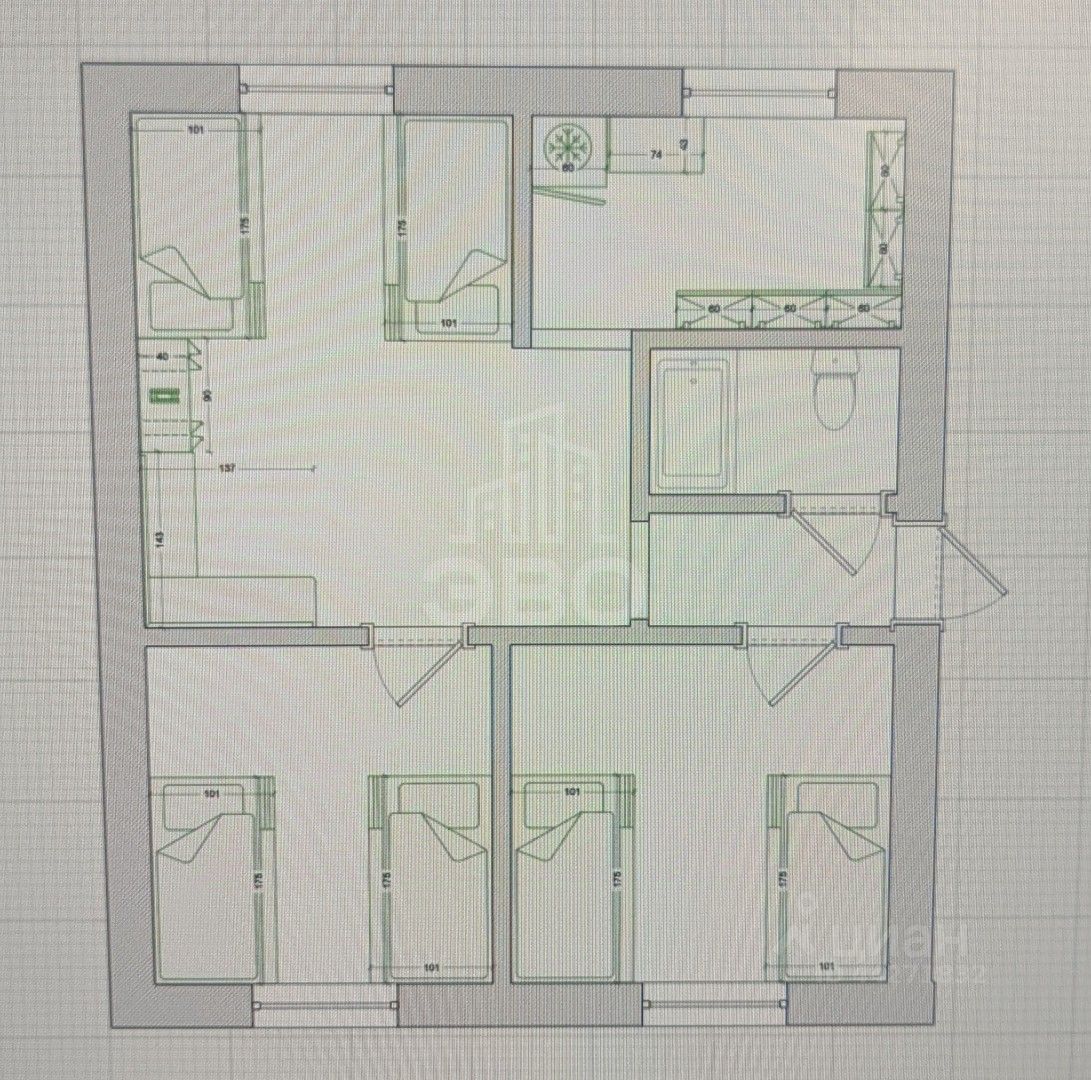 Арт. 115506078 Сдается 3-комнатная квартира в тихом районе рядом с метро Автово (12 мин пешком).