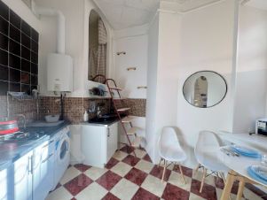 В центре старого города, в золотом треугольнике 3 мин от Невского проспекта, в шаговой доступности от 4 станций метро Достоевская (5 мин пешком), Владимирская (7 мин пешком) Маяковская (13 мин пешком) Восстания и Гостиный двор (18 мин пешком). Предлагаем уютную, атмосферную, ухоженную квартиру в тихом, уютном и безопасном дворе с отдельным входом в собственную парадную. Высокий бель этаж. Спальня из кухни с невысоким потолком, как комната-капсула, в стиле прованс с картиной и штукатуркой в стиле прованс, здесь пол из отреставрированного, деревянного бруса-выкрашен в серый цвет. Комфортный диван -кровать обеспечит вам глубокий ,спокойный сон. На кухне на втором ярусе двуспальная кровать. На первом этаже: ламинат и кафельная плитка.По лесенке односпальное место на втором ярусе. Ванная-мозаика. Все готово для жизни: посуда, бытовая электротехника: фен, пылесос, утюг, сушилка, гладилка.От Невского проспекта 3 минуты пешком