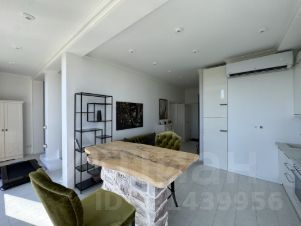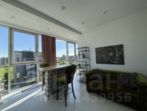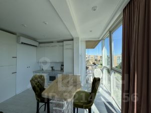 - Планировка апартамента: кухня-гостиная и спальня с панорамными окнами, совмещенный санузел ( ванна).