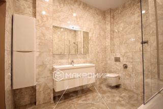 По планировке: просторная кухня, гостиная, 2 изолированные спальни, 2 санузла с душевой и ванной, гардеробная, хозяйственная комната и балкон.