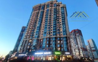 * Просторная кухня-гостиная 25 м² с выходом на лоджию и французский балкон. Отдельная спальня с панорамным окном. Большая гардеробная.
