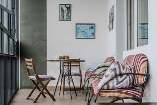 На лоджии есть диванчики, стулья, столики. Можно с комфортом проводить там.
