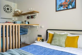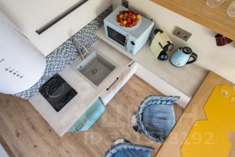 Студия расположена в новом апарт-отеле Putilov-Avenir, в 2 минутах от станция м. Кировский завод (красная ветка), от которой всего пару станций до центра города.