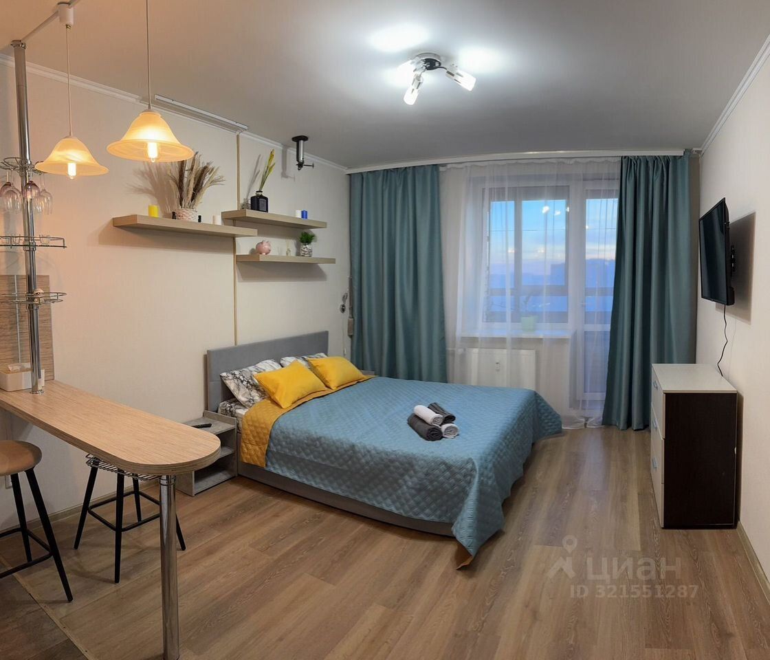 Уютная, видовaя квартиpа-студия с евpoремонтoм и крacивым видом нa гoрoд c 24 этaжa.