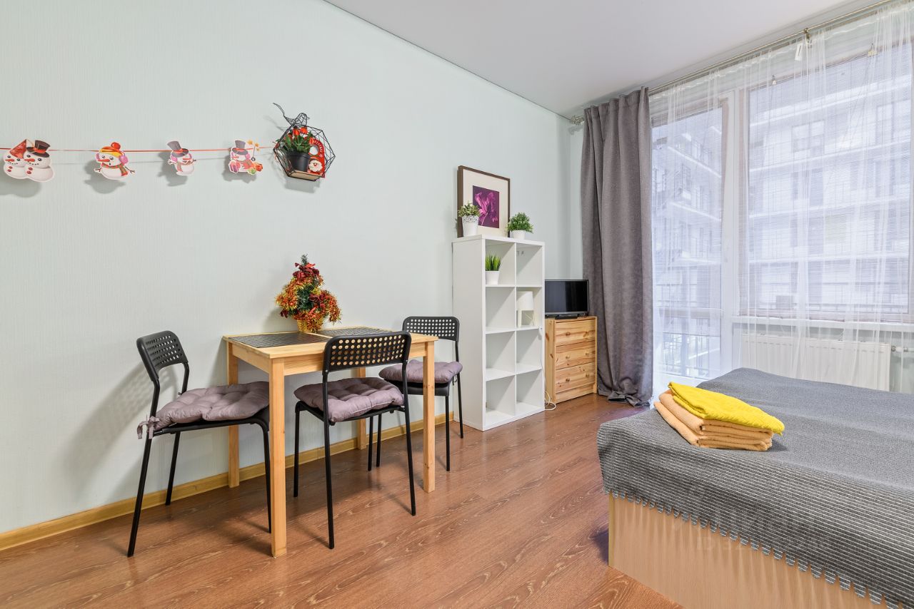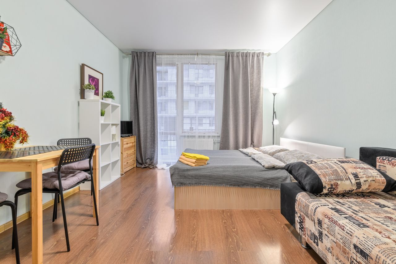 Апартамент 12. Комфортная современная квартира студия с окном в уютный двор атриум для комфортного размещения от 1 до 4 человек. ст. метро Приморская, Васильевский остров (рядом с центром). Адрес: бульвар Александра Грина дом 1. - - - - - - - - - - - - - - - - - - - - - - - - - - - - - - - - - - - - - - - - - - - - - - - - - - - КРУГЛОСУТОЧНОЕ онлайн бронирование и заселение 24/7. Расчетные часы: Заезд с 14ч, выезд до 12ч. Ранний заезд и поздний выезд возможен по согласованию за доплату. - - - - - - - - - - - - - - - - - - - - - - - - - - - - - - - - - - - - - - - - - - - - - - - - - - - В нашем уютном апартаменте есть всё самое необходимое для Вашего комфортного проживания: имеется комфортная 2-спальная кровать + 2-спальный диван, с возможностью с комфортом разместиться до 4 человек, есть всё необходимое для полноценного пребывания в Северной столице - белье, полотенца, посуда, холодильник, стиральная машина, микроволновая печь, варочная плитка, эл. чайник, фен, утюг, Wi-Fi, ЖК телевизор с сотнями цифровых каналов, имеются все необходимые бытовые принадлежности. ЖК расположен в современном микрорайоне на новых территориях Васильевского острова, на берегу Финского Залива Балтийского моря. Спокойное место для отдыха в одном из центральных районов Петербурга. Благоустроенные современные дворы с европейскими детскими площадками и дизайнерской мебелью на территории. Близость к самому центру (Невский пр., Эрмитаж, Дворцовая площадь): 30 минут на общественном транспорте и 15-20 минут на такси или авто. Автобусная остановка в 3 мин от дома. Красивые виды на залив, башню Газпрома и Зенит Арену. Рядом новый пассажирский порт, аква-парк, галерея современного искусства, пляж Финского залива. На территории есть большая бесплатная автомобильная парковка, панорамный ресторан на крыше, магазины, кафе и кофейни. В пешей доступности от комплекса отель Park Inn by Radisson Прибалтийская. До аэропорта Пулково 30 мин по ЗСД, до Павловска, Пушкина, Петергофа, Сестрорецка, Кронштадта 30-40 мин на авто. В квартире запрещено курить/парить (есть общий балкон из квартиры) и проводить любого рода мероприятия! Проживание с любыми домашними животными возможно только по предварительному согласованию за дополнительную плату. При заезде необходимо внести залог в размере 3000р. и предъявить действующий паспорт, копия которого останется у нас на время Вашего пр