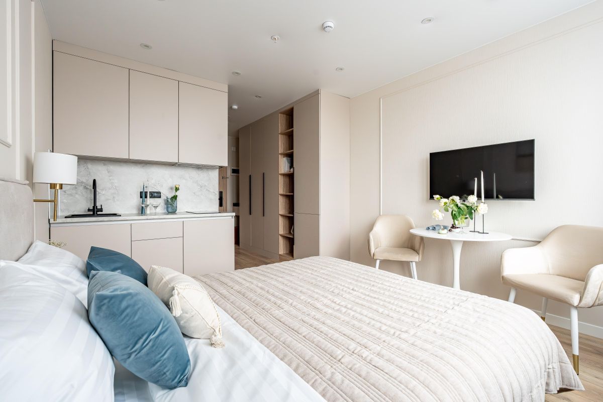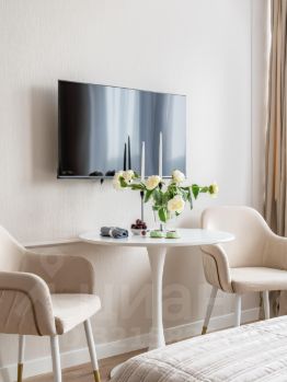 • Студия выполнена в светлых тонах с продуманным зонированием и стильной мебелью, создающей атмосферу уюта и гармонии.