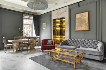 Квартира просторная: кухня-гостиная с зоной отдыха, спальня и отдельная кухня, высокие потолки. Квартира в изысканном, утонченном стиле, свежий ремонт. При отделке использовались натуральные, экологичные материалы: натуральный камень, мрамор, ценные породы дерева. Квартира оснащена всем для комфортного проживания: импортная, итальянская мебель, кухня, встроенная бытовая техника, холодильник, посудомойка, кондиционер, стиральная машина, WI-FI, ЖК ТВ, посуда, постельное, интерьер продуман до мелочей, заезжай - и не знай хлопот.
