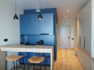 В квартире выполнен дизайнерский ремонт, что создает атмосферу уюта и современности. Пространство студии функционально зонировано, есть вся необходимая мебель как в комнате, так и на кухне. Из техники в вашем распоряжении холодильник, телевизор и стиральная машина. Ванная комната оборудована душевой кабиной, а окна выходят во двор, что обеспечивает тишину и спокойствие.