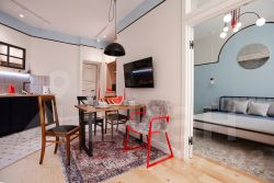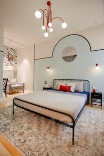 Интерьер квартиры оформлен в стиле эклектичного минимализма с элементами лофта и ретро, где каждая деталь продумана для комфорта и визуального баланса — ваш личный уголок тишины в самом сердце города. Пространство совмещает современные решения и винтажные акценты, создавая уютную и живую атмосферу.