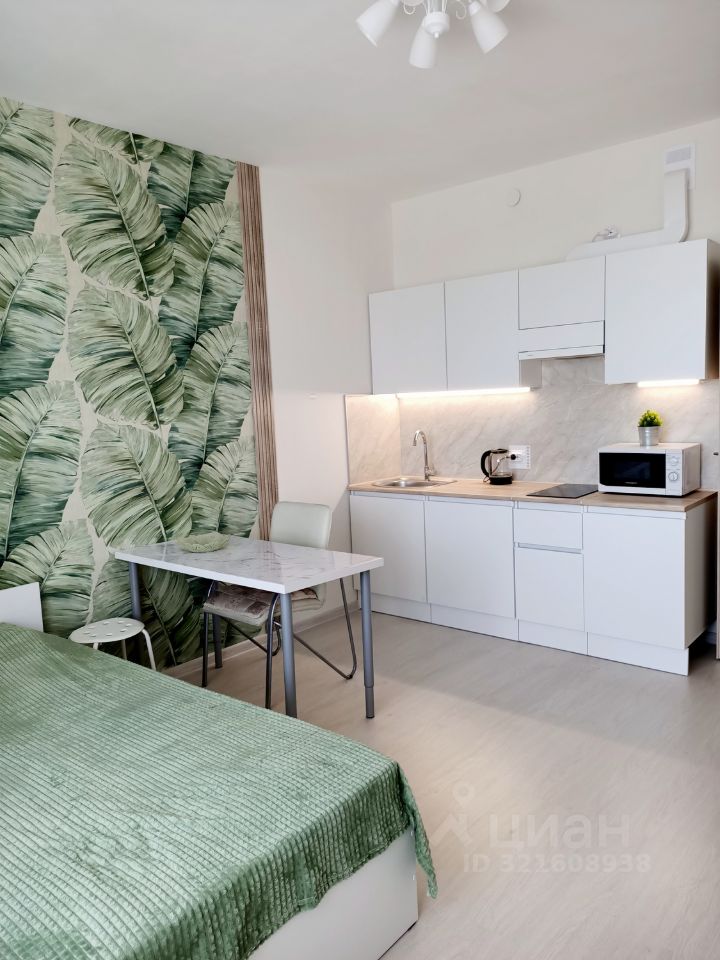 С 15 февраля от собственника на длительный срок сдаётся уютная студия с новым ремонтом и техникой, расположенная на девятом этаже современного 25-этажного дома. Общая площадь квартиры составляет 24 кв. м, жилая площадь — 17кв. м, а кухня — 2 кв. м. Окна выходят на КАД, никаких "окна в окна", что обеспечивает хорошее естественное освещение.