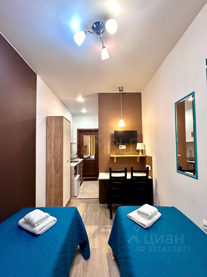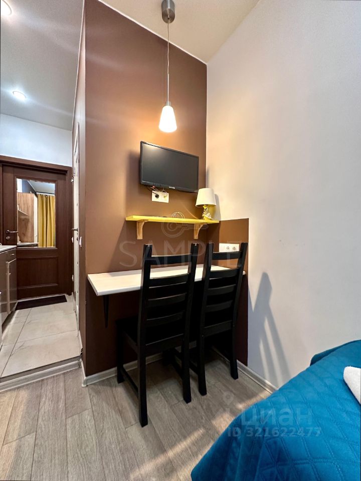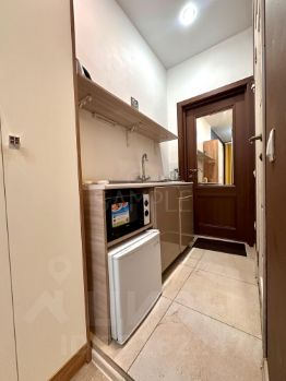 - Кухня, расположенная прямо в студии, с плитой, микроволновкой, холодильником и посудой для готовки;