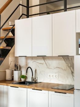 Кухонная зона оборудована всем необходимым для приготовления свежей и вкусной пищи. Здесь вы найдете плиту, микроволновую печь, холодильник и посуду, чтобы удовлетворить свои кулинарные фантазии, а также посудомоечной машиной.