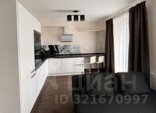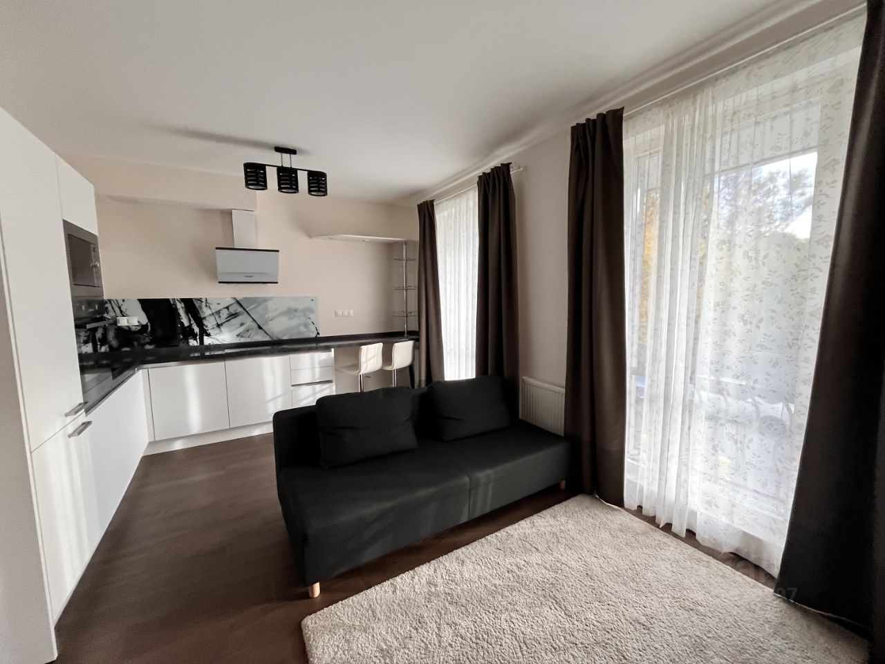 Квартира идеально подходит для комфортного проживания одного человека или пары, имеет открытую, современную планировку: вместительная гардеробная комната при входе; просторная и светлая (с двумя французскими окнами) кухня-гостиная, функциональная кухонная зона оборудована встроенной техникой, в зоне гостиной - диван ИКЕА, который, по необходимости, можно использовать как дополнительное спальное место; в спальне - кровать 2Х2м + тумба ИКЕА.