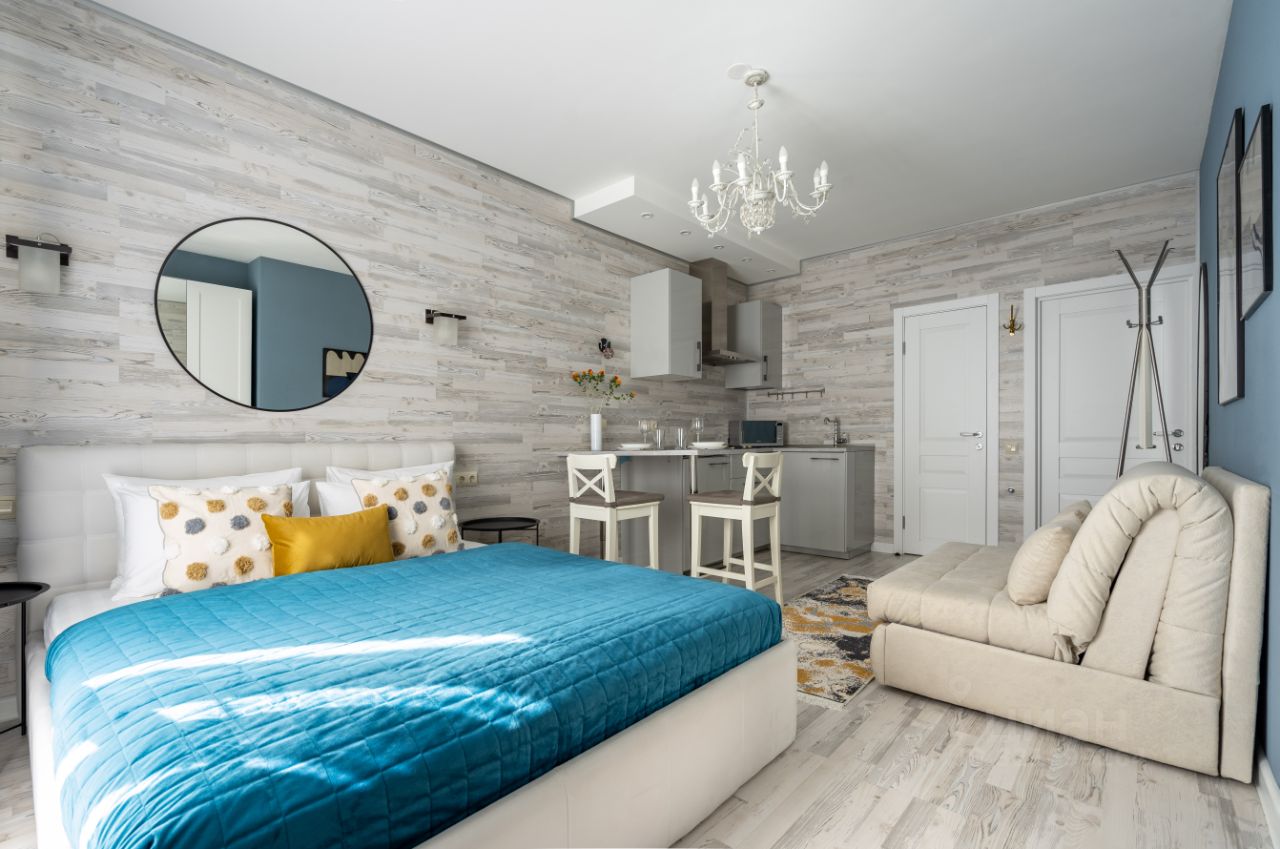 Уютная квартира для четверых в новом жилом комплексе у Московского вокзала Indigo 4. Современное оснащение, продуманный интерьер и шаговая доступность до станций метро Маяковская и Площадь Александра Невского — отличный выбор для длительного проживания в центре Петербурга.