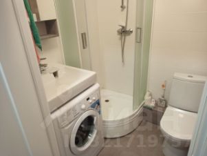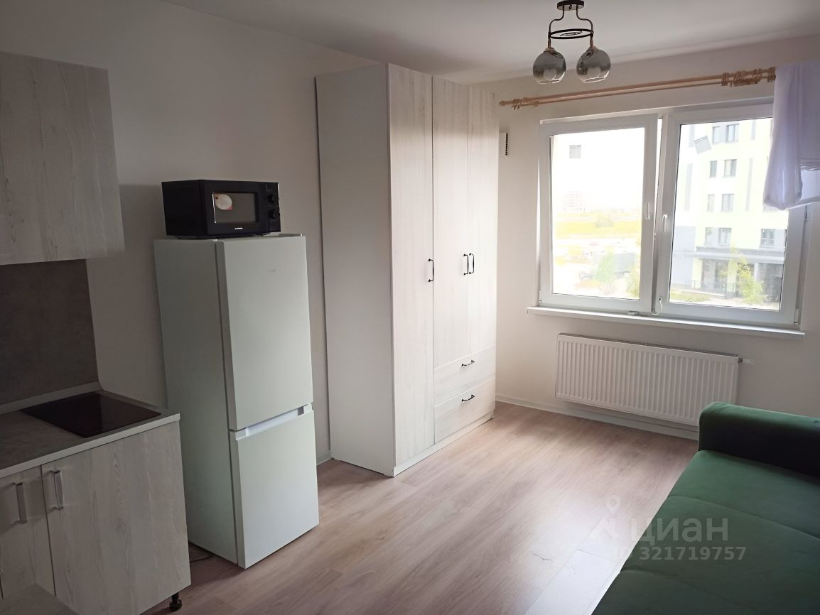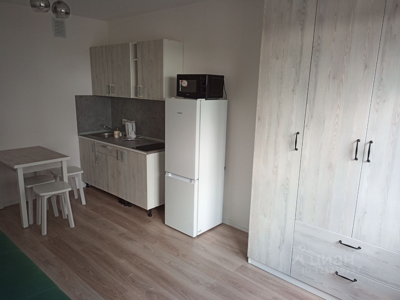 Студия в новом доме, ещё никто в ней не проживал, поэтому все выглядит свежо и аккуратно. В комнате и на кухне есть вся необходимая мебель. В квартире есть холодильник и стиральная машина, поэтому можно сразу заехать и начать жить. Санузел совмещенный, оборудован душевой кабиной, что удобно для быстрой утренней подготовки.