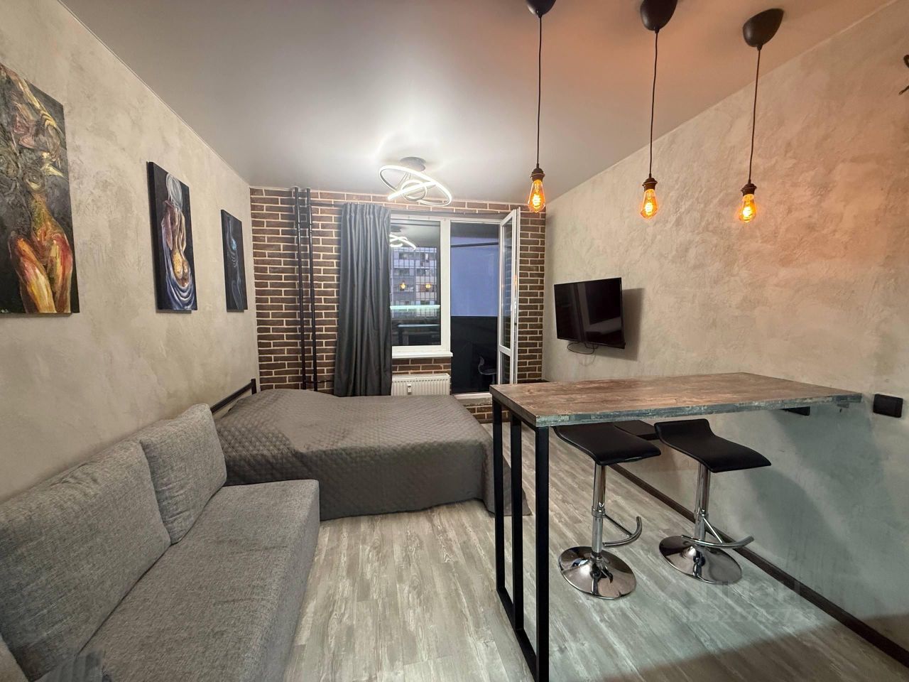 Стильная студия с современным ремонтом и уютной атмосферой. Просторная лоджия с диванчиком и видом во двор обеспечивает тишину и спокойствие.