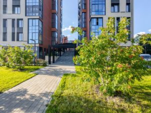 Дом новый, ухоженный и безопасный, с продуманной территорией без лишнего шума. Район сочетает близость к метро и зелёные зоны для прогулок. В шаговой доступности магазины, кафе и всё необходимое для повседневной жизни.