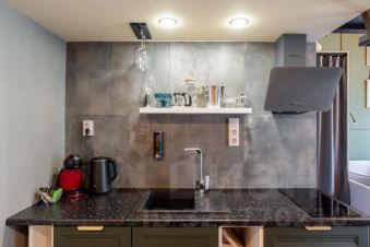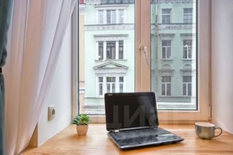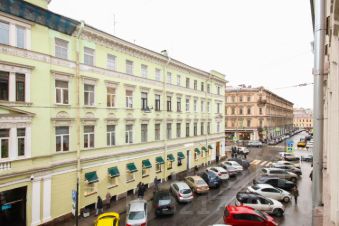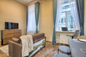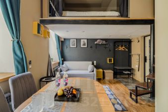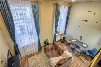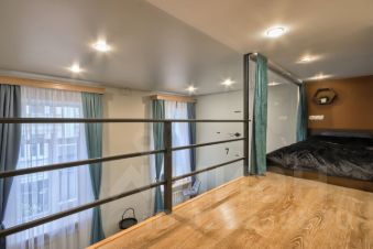 Студия с отдельной спальней на втором ярусе с 1 большой кроватью с ортопедическим матрасом и подушками, проходная гостиная-столовая с раскладным диваном на 2 спальных места и обеденным столом, а также кухней, оснащенной всей необходимой бытовой техникой и совмещённый санузел с полноценной ванной. Имеется приточно-вытяжная вентиляция. Из окон открывается вид на историческую застройку.