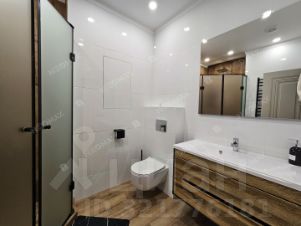 Современный совмещенный санузел с просторной душевой кабиной.