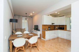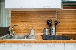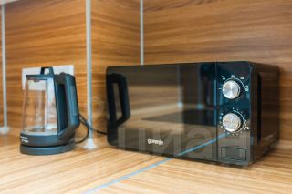 • Полностью оборудованная кухня-гостиная - варочная панель, микроволновка, холодильник, чайник, посуда для готовки и сервировки