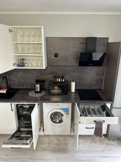 кухня со всей необходимой техникой и домашней утварью