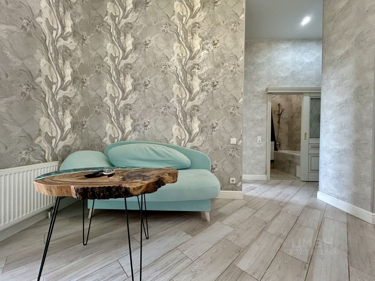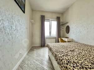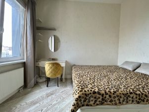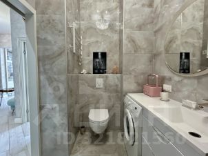Квартира отличается дизайнерским ремонтом и полностью готова к комфортному проживанию. Просторная кухня площадью 16 кв. м оборудована всей необходимой техникой, включая холодильник, посудомоечную машину и телевизор. В комнате и на кухне есть современная мебель. Санузел совмещённый, есть ванна, что добавляет удобства.