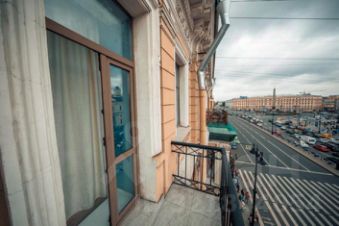 Балкон с видом на город делает эти апартаменты уютным местом, где легко почувствовать атмосферу Петербурга.