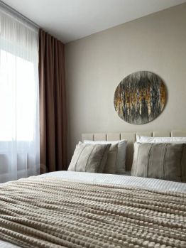 Студия на 22 этаже современного дома с лифтом. Просторная комната с двуспальной кроватью. В комнате также есть телевизор с цифровым ТВ. Кухонная зона оборудована всем необходимым, холодильник, плита, чайник и микроволновая печь. Ванная комната оснащена душевой кабиной с тропическим душем .Из окон открывается вид на улицу.