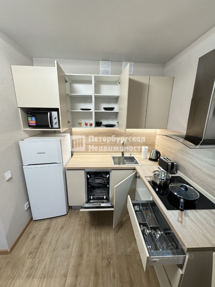 В комнате (17,1 кв.м) 2 окна - вид в зеленый двор, из кухни (13,2 кв.м.) выход на застекленную лоджию, совмещенный санузел, просторная прихожая. Вся мебель и техника новые, холодильник Liebherr, посудомоечная машина Bosch, стиральная машина Samsung, чайник и микроволновка, кастрюля и сковорода, столовые приборы и т.д.