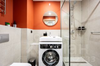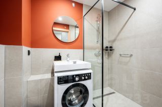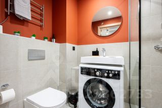 В ванной комнате: туалет, душ, стиральная машина, фен, утюг.