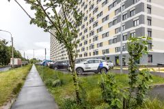 В красивом современном дворе жилого комплекса располагается детская и спортивная площадки.