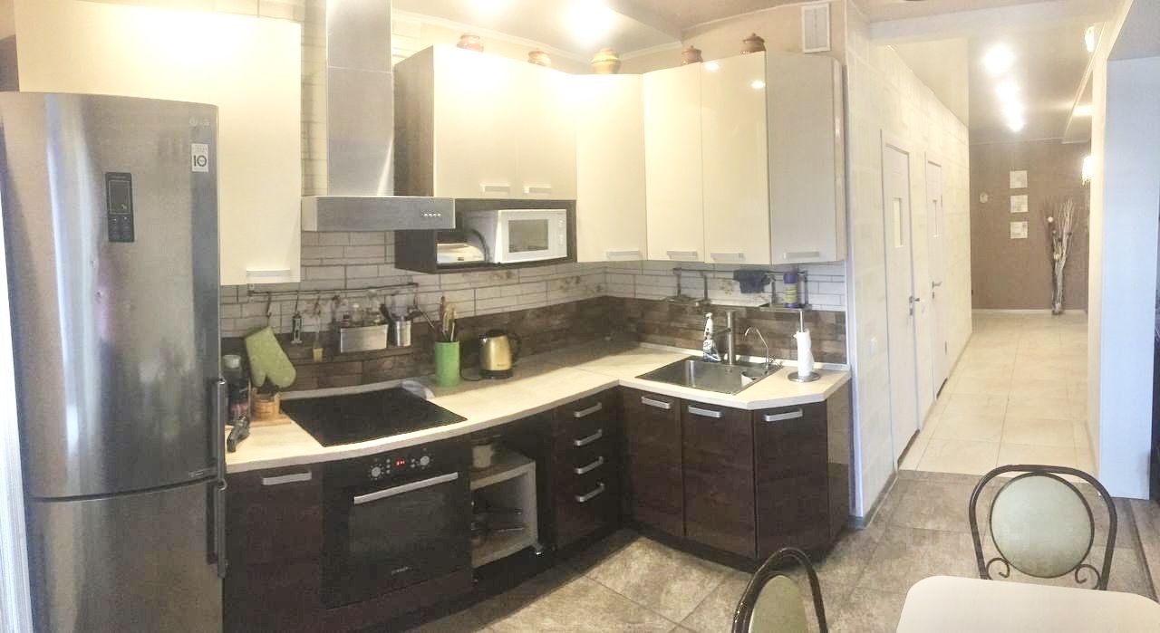 Два удобных двуспальных дивана в гостиной, а также мебельная горка из бамбука со светящейся витриной и книжными полками, рабочий стол с ящиками и настольной лампой, большой телевизор с плоским экраном, кабельное ТВ- более 900 каналов, быстрый Wi-Fi. ; Полностью оборудованная кухня со стеклокерамической сенсорной плитой и духовкой, раковина со встроенным краном для фильтрованной воды, вся необходимая кухонная утварь. Санузел раздельный - подвесной унитаз с инсталляцией, в нише - водонагреватель, стиральная машина, сушилка и гладильная доска. Есть гардеробная с полностью зеркальными раздвижными дверцами в прихожей, и в спальне-большой 4-хдверный шкаф-купе полностью оборудованный для хранения предметов гардероба.