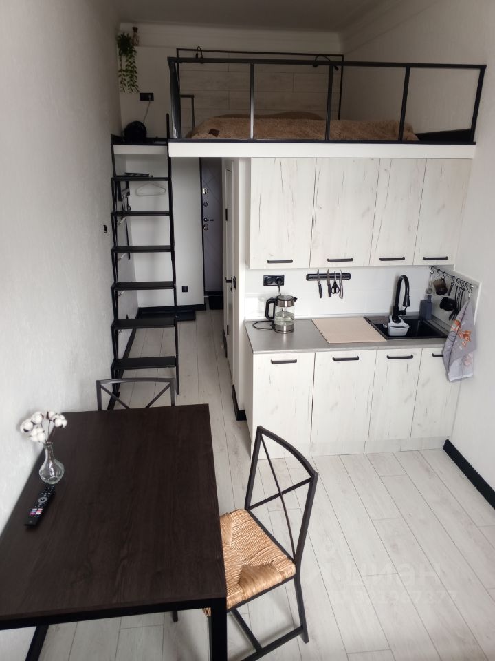 Уютная студия после современного ремонта в стиле минимализм в атмосферном доходном доме конца XIX века на Петроградской стороне.