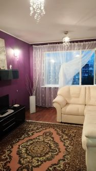 В квартире есть всё необходимое для проживания. Выполнен косметический ремонт. В комнатах и на кухне имеется мебель, а также техника: холодильник, стиральная машина и телевизор. Есть просторный шкаф в спальне. Есть балкон. Сама квартира находится в отдельном закрытом тамбуре, где можно хранить вещи.