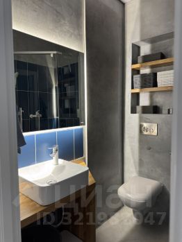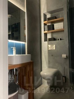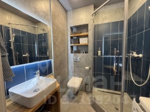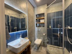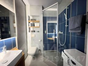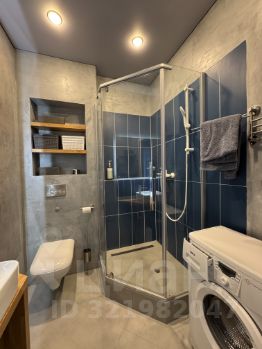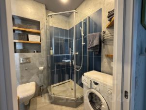 Санузел - душевая кабина, стиральная машина, большое зеркало и много мест для хранения.