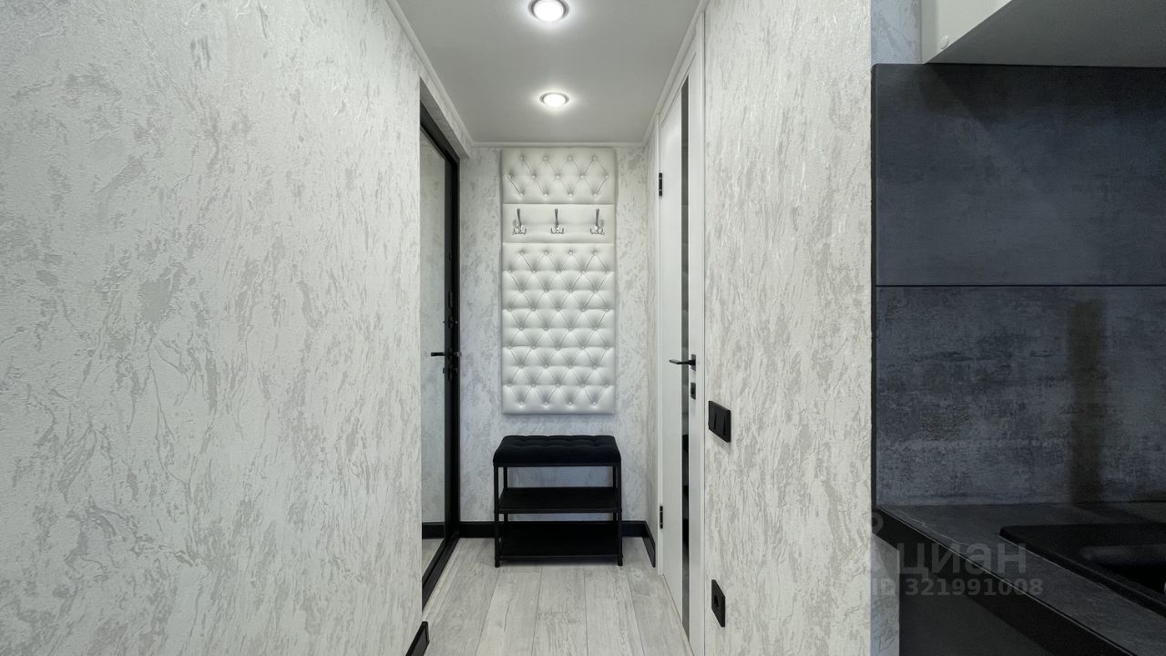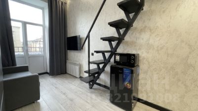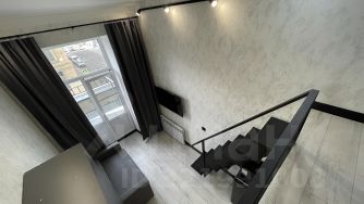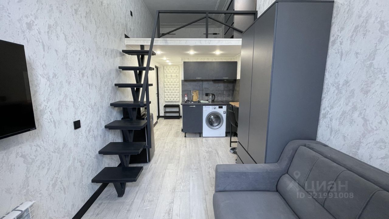 Имеется вся необходимая мебель и техника: на втором уровне - большой ортопедический матрас, телевизор с Smart-Tv и тумба для хранения вещей. Внизу расположен санузел, гостиная и кухня. В гостиной так же есть телевизор, удобный диван и обеденный столик. Мини-кухня оснащена варочной панелью, холодильником и микроволновой печью. В студии есть необходимый набор посуды для быстрого приготовления и приема пищи. Здесь достаточно много места для хранения вещей и чемоданов. Окна студии выходят на улицу на балкон. В студии располагается индивидуальный санузел с душем. Душ так же очень удобно организован, есть фен, сушилка для полотенец, полочки для хранения косметики и большое зеркало.