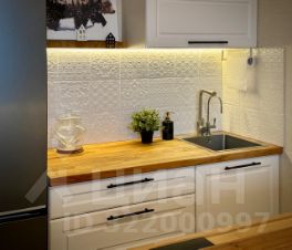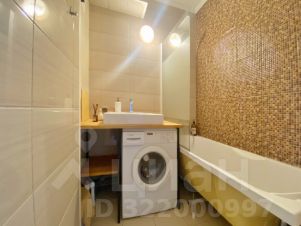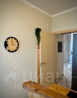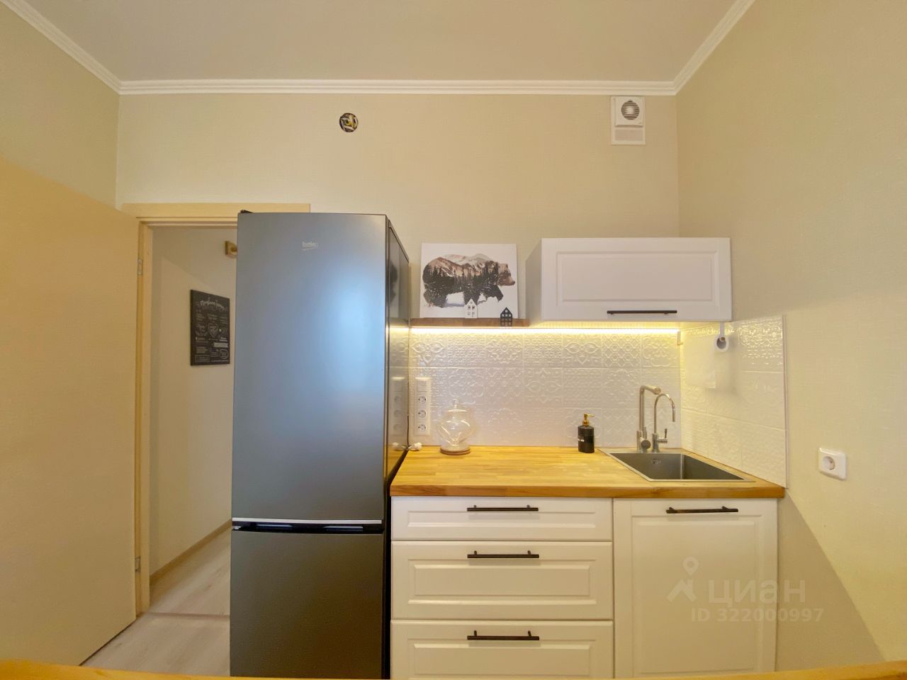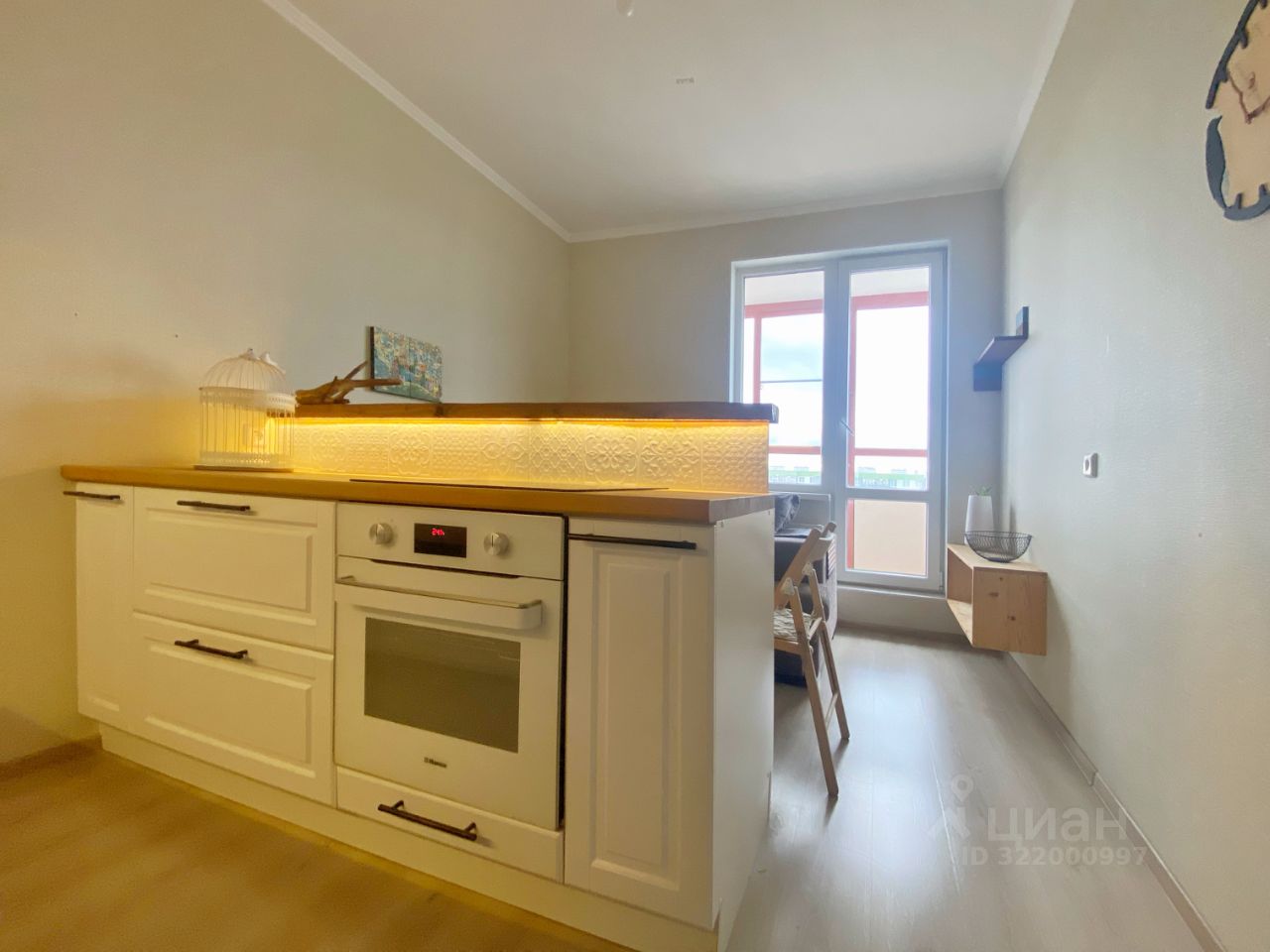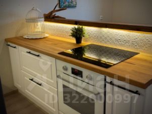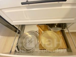 Большая кухня-гостиная с кухонным гарнитуром и современной бытовой техникой, большой комфортный угловой диван, стол, стулья, тумбочка под телевизор. Из кухни есть выход на лоджию. Две изолированные комнаты: 16 и 14 метров. В спальне большая кровать, туалетный столик. Окна выходят во двор, вид на лес. КУ летом: 5000 зимой: 8000 примерно.