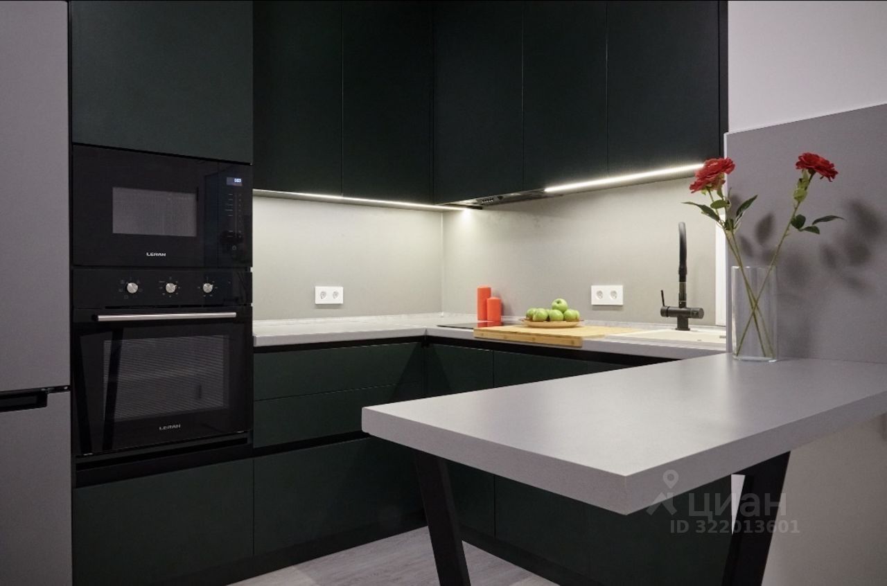 Кухонная зона оснащена современной встроенной техникой: индукционная варочная панель, духовой шкаф, вытяжка, микроволновая печь, холодильник, чайник, встроенный фильтр для питьевой воды.