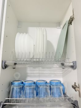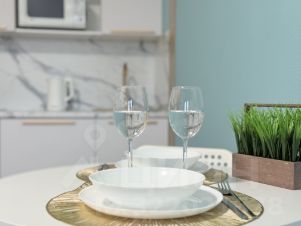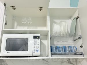 Кухня со всем необходимым ( холодильник, варочная панель, чайник, а так же посуда)
