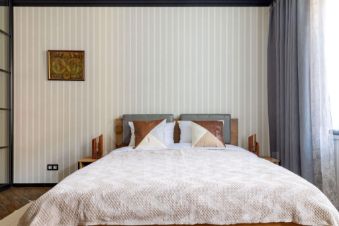 Просторная квартира в самом центре, оборудована всем необходимым для комфортного проживания (мебель и бытовая техника, а также посуда и столовые приборы).