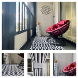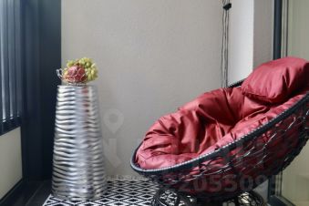 Лоджия позволяет наслаждаться свежим воздухом, не выходя из дома, есть красивое кресло из ротанга на балконе )