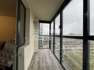 Уютная комната, правильной геометрической формы с выходом на огромную застекленную лоджию, с панорамным остеклением, откуда открываются бесподобные виды, где можно встречать рассветы и закаты с любимой чашечкой кофе, любуясь красотами Санкт-Петербурга.