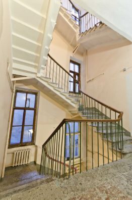 Парадный вход с Миллионной улицы. Широкая парадная. Окна квартиры выходят во двор и на Мошков переулок. Из окна виден шпиль Петропавловской крепости.