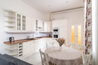 В квартире произведен высококачественный ремонт (стеклопакеты, стены оштукатурены). Полы с подогревом. Высота потолков - 3,5 м. Wi-Fi.