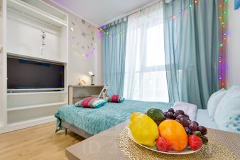 В квартире выполнен дизайнерский ремонт, что создает современный и стильный интерьер. Здесь есть все необходимое для комфортного проживания: холодильник, телевизор и стиральная машина. Кухня и комната полностью меблированы, поэтому вы сможете сразу заселиться и начать наслаждаться жизнью. Санузел совмещенный, оборудован душевой кабиной.