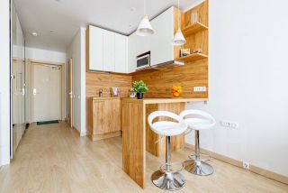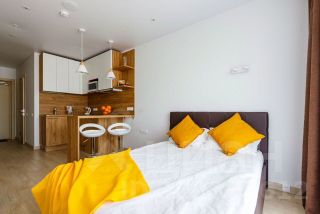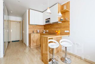 Предлагается в аренду современная студия в новом пространстве со стильным дизайном, функциональные места для хранения, своя кухонная зона, постельные, кухонные и столовые принадлежности, посуда и электроника. Возможно дополнительное обслуживание номера.