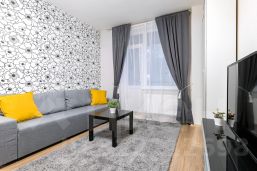 В квартире: ЖК-телевизор, высокоскоростной интернет WI-FI, стиральная машина, утюг, фен, гладильная доска, сушилка для белья, полностью оборудованная кухня. По запросу БЕСПЛАТНО предоставим: детскую кроватку, стульчик для кормления и горшок. Уборка раз в 2 недели - бесплатно. Финальная уборка - бесплатно.