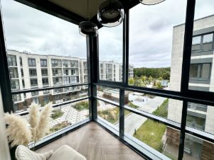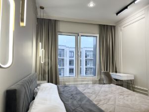На берегу Финского залива в новом жилом комплексе бизнес-клacca Bereg Курортный сдаются семейные апартаменты с двумя спальнями и большой кухней-гостиной.