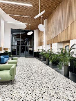 Центральное лобби с камином, библиотекой и массажными креслами для вас бесплатно.