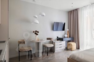 Студия находится на 9 этаже, полностью укомплектована для комфортного проживания, удалённой работы и спокойного отдыха. Высокоскоростной интернет и телевизор. Для приготовления пищи оборудована кухня.